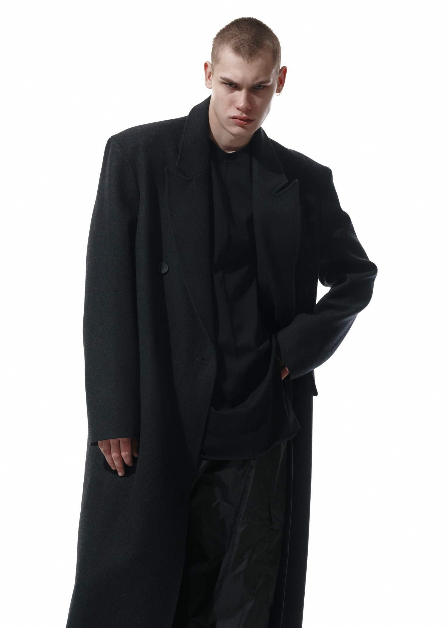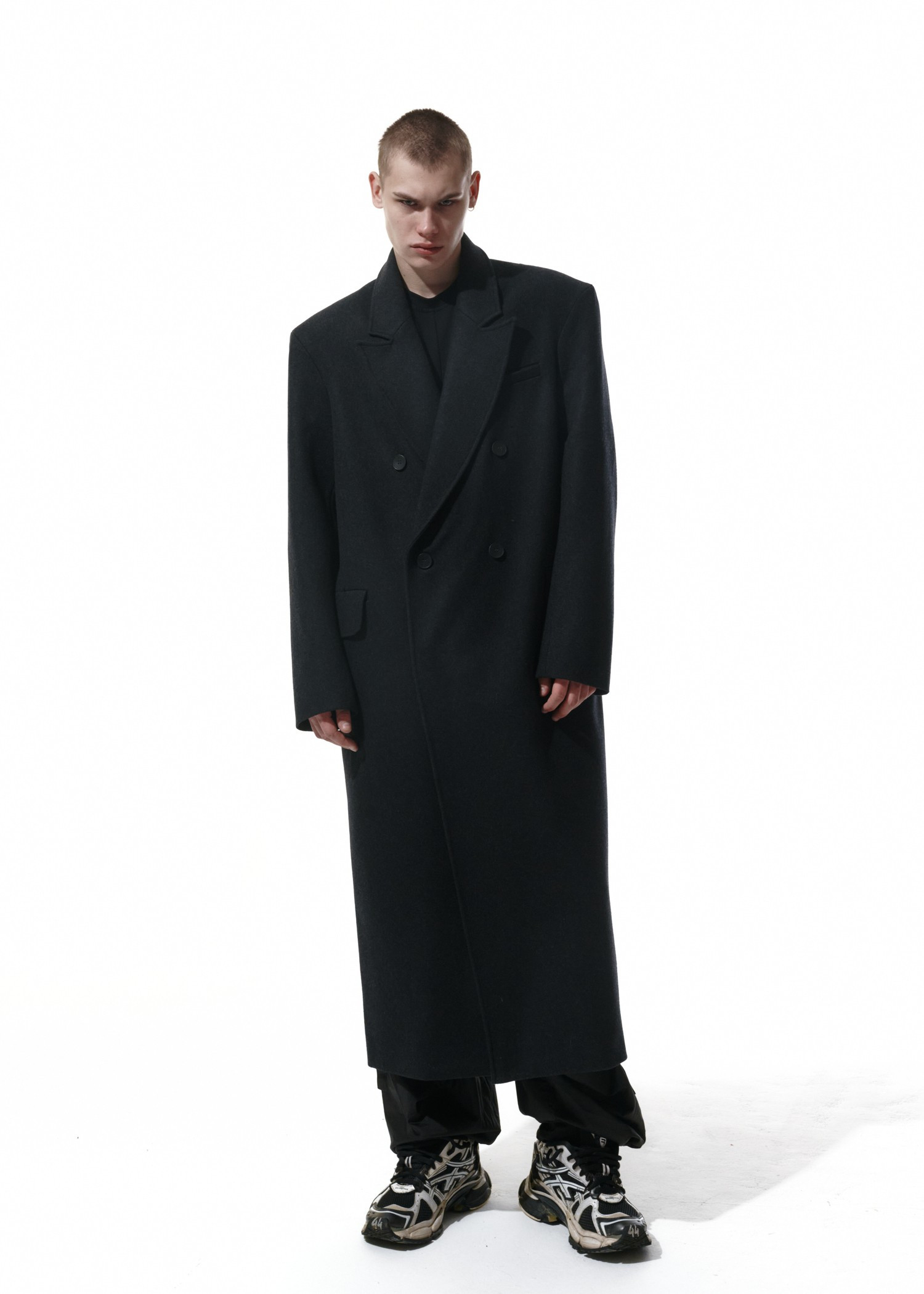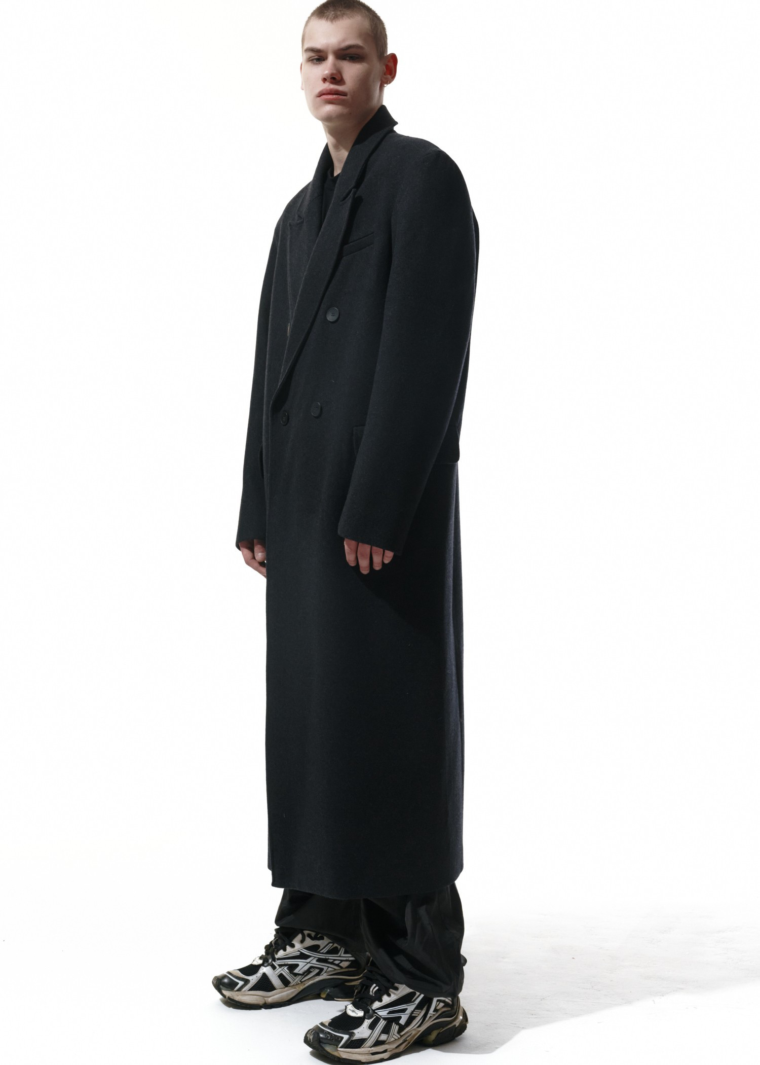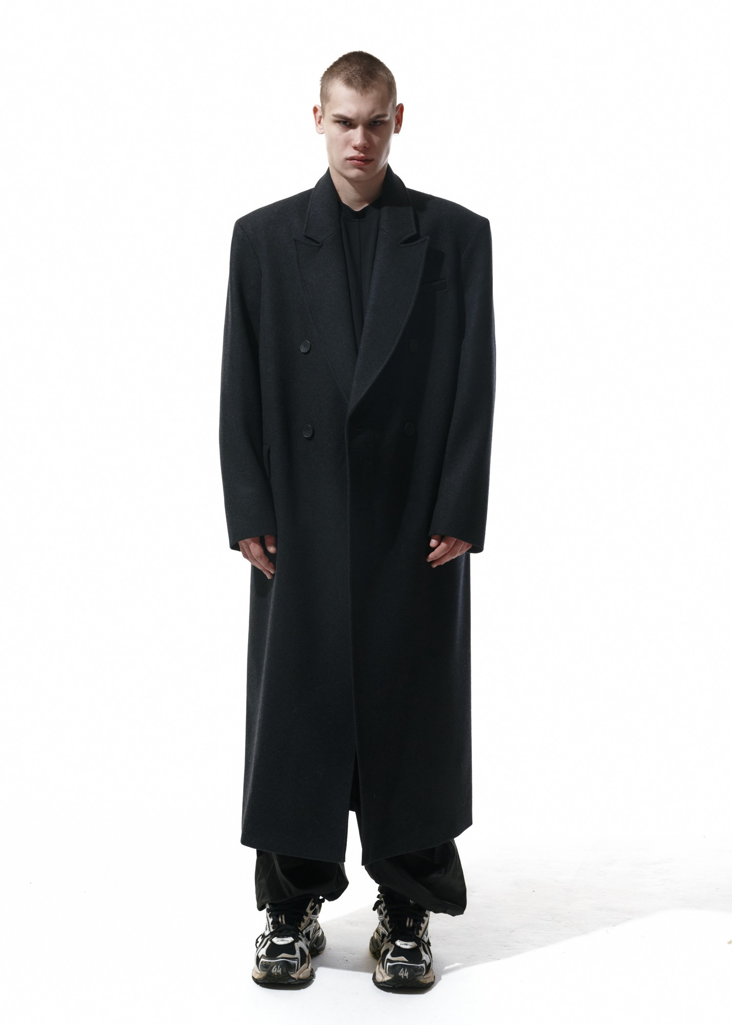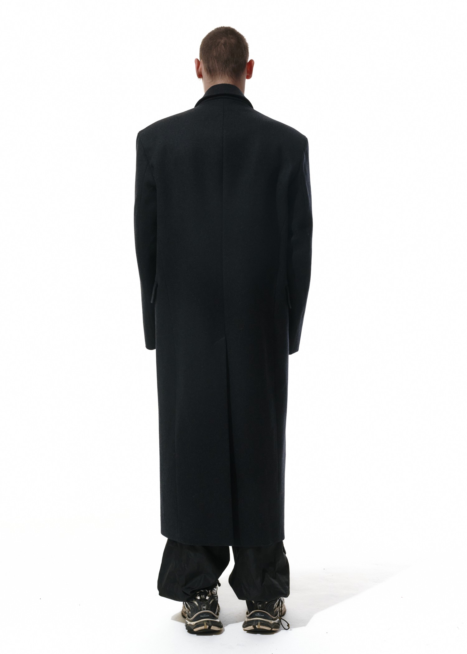 Это вроде то же Дедово пальто, но претерпевшее ряд изменений. Теперь у него усилено плечо, оно плотное и держит форму по вашему запросу. Мы немного укоротили рукава. Не пугайтесь, они по-прежнему длинные и подойдут на выдающийся рост. Оставили одну шлицу вместо двух. И сделали его гипердлинным. И если до этого тебе не хватало вот этой небольшой полоски длины, теперь все есть для того, чтобы оно, накинутое на твои хрупкие плечи, будто бы с мужского плеча, грело почти до пят.