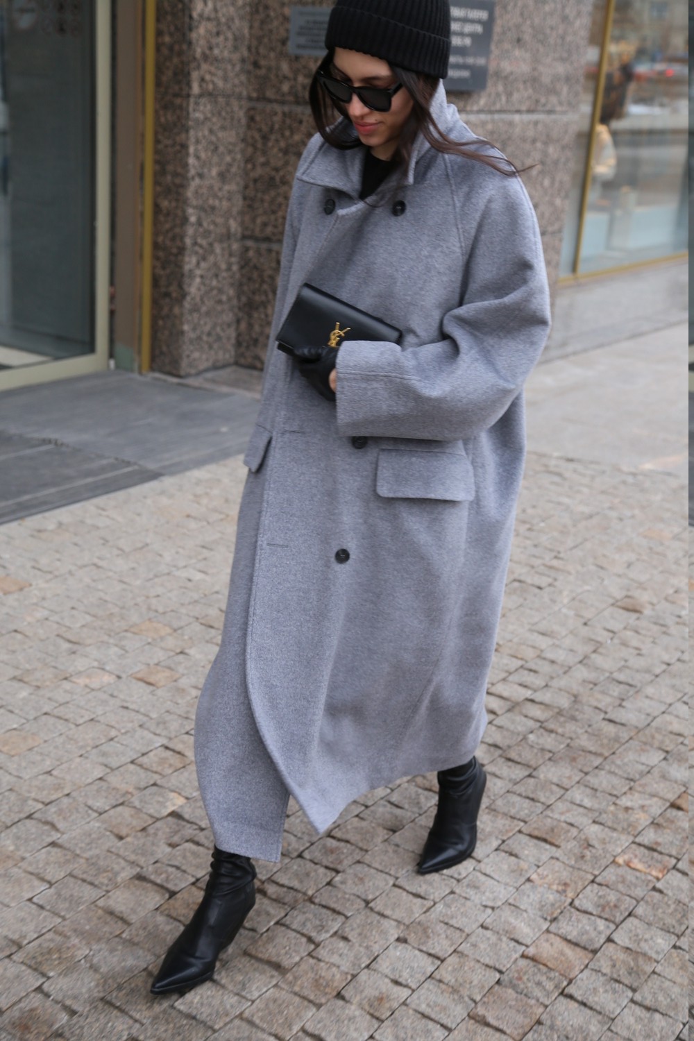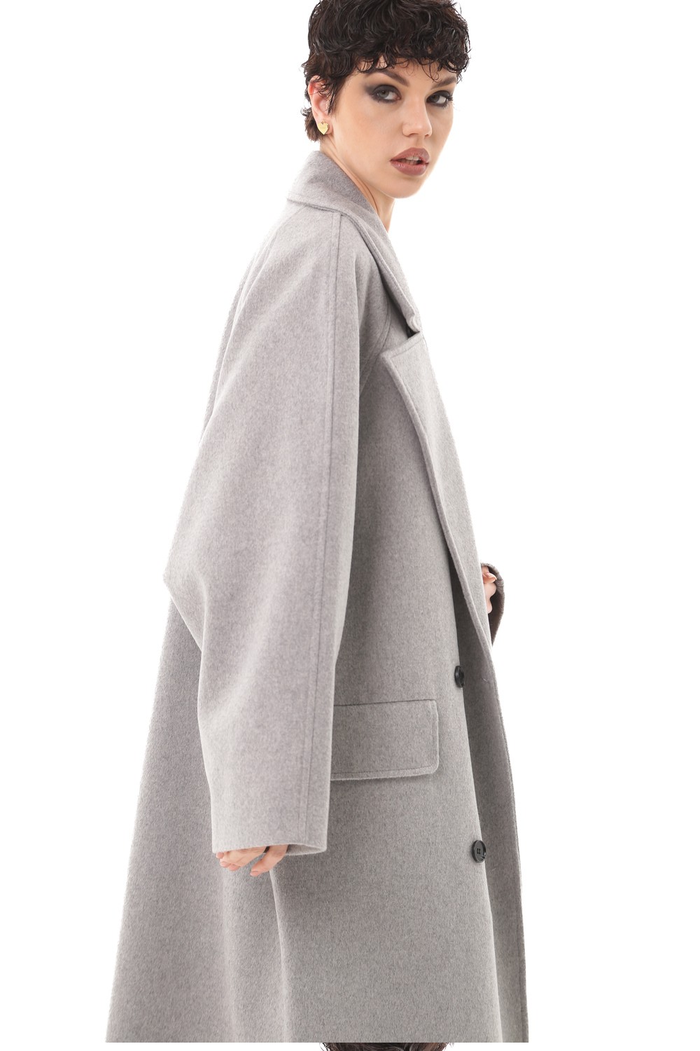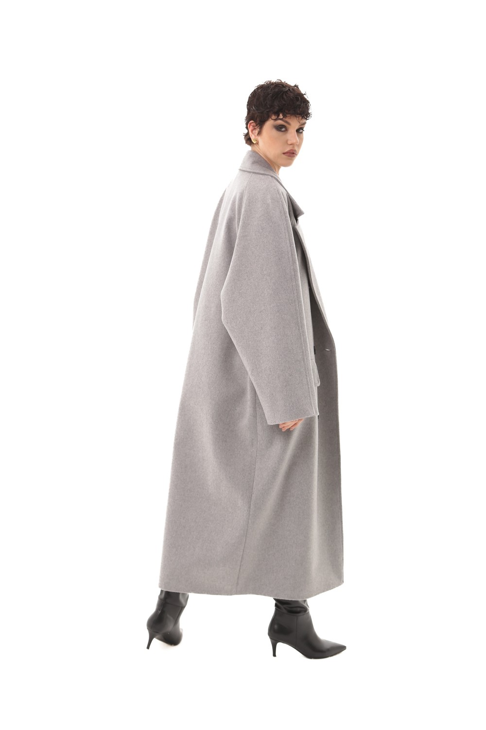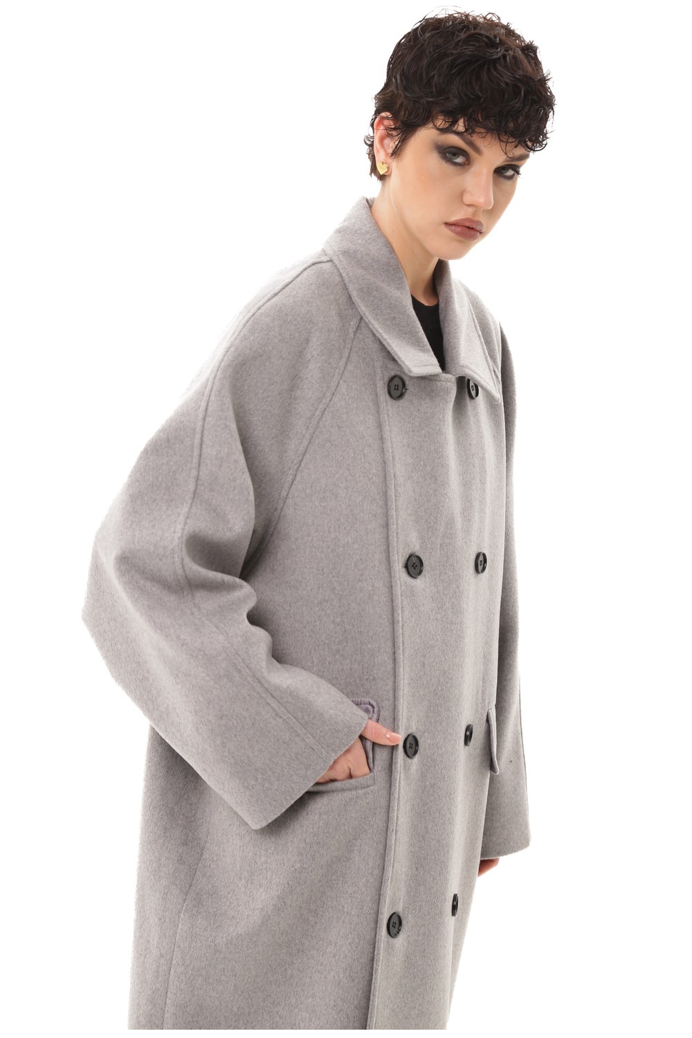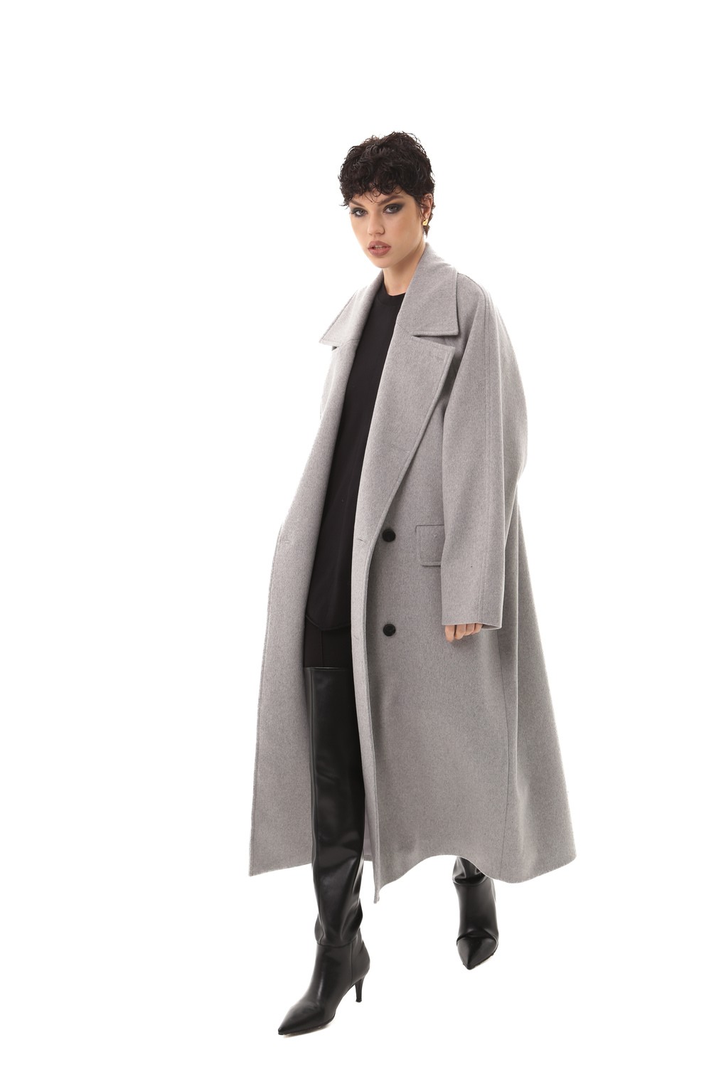 Вневременная классика в современном прочтении ー серое демисезонное пальто прямого кроя с двубортной застежкой. Его расслабленный силуэт дарит свободу движения, а строгие линии и боковые карманы с клапанами добавляют архитектурности образу. Эту модель безусловно оценят те, кто предпочитает минимализм и сдержанный шик.