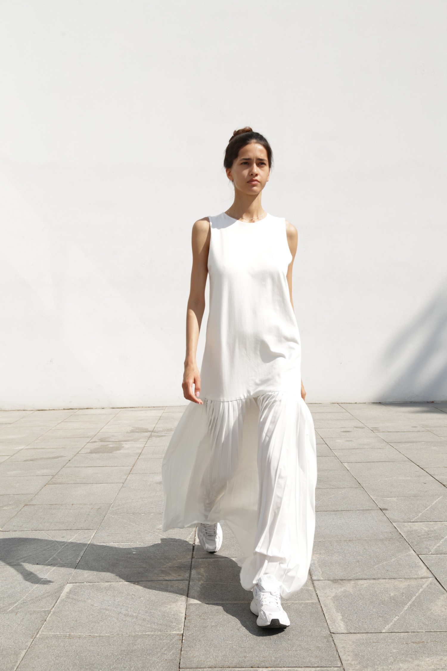Наше платье прямого силуэта создано для самых беззаботных: никаких застежек, никаких премудростей. Верх из двухслойного дышащего хлопка, а внизу игривый плиссированный волан. А ещё, мы выполнили все внутренние швы изделия «в закрытую» — это значит, что вам в нем точно будет комфортно, а носить платье вы сможете хоть наизнанку.