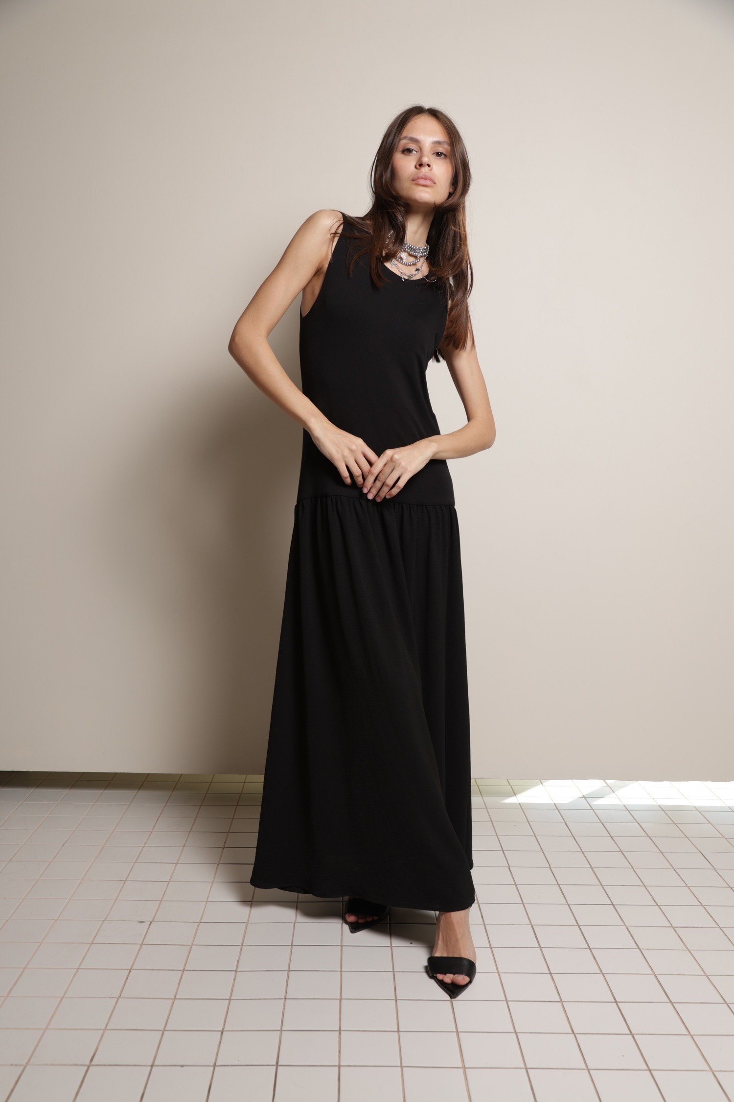 Платье «Петербург» — это лаконичное чёрное платье с удлинённым силуэтом и верхом выполненным из мягчайшего 100% бамбука.