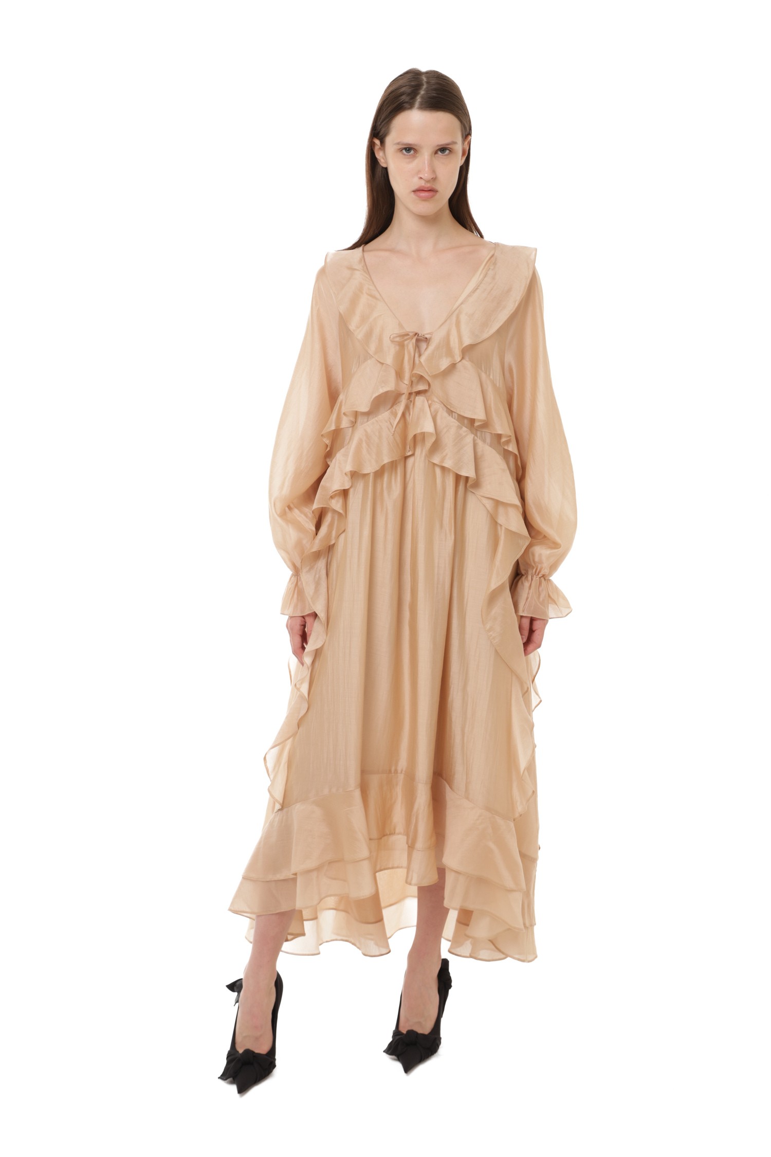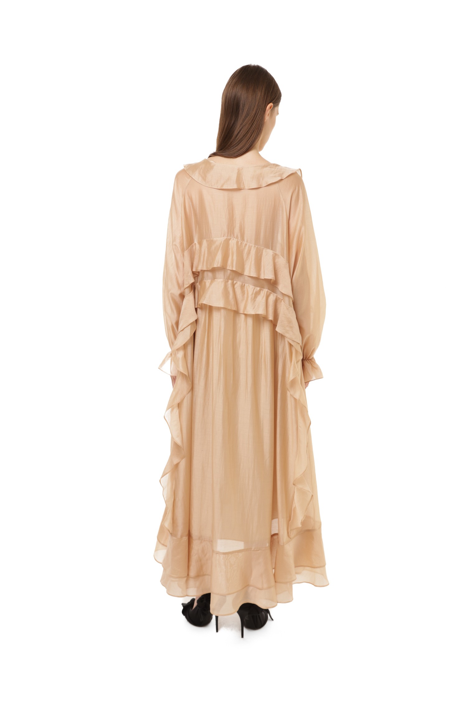 Платье с воланами бежевое