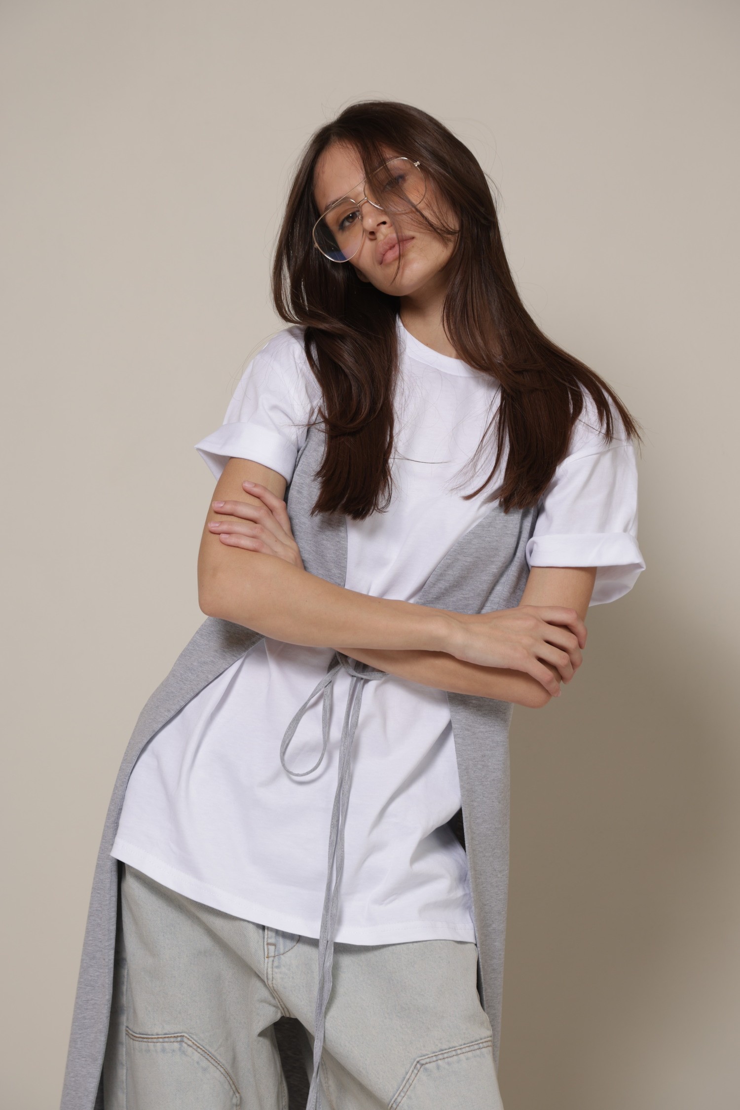 Нежный, спокойный серый цвет даёт бесконечный простор для модных экспериментов: с базовой однотонной футболкой или лонгсливом и кедами – для городских прогулок, с рубашкой и ботильонами – для офиса, с воздушной блузой и нежными аксессуарами – для романтического вечера.
